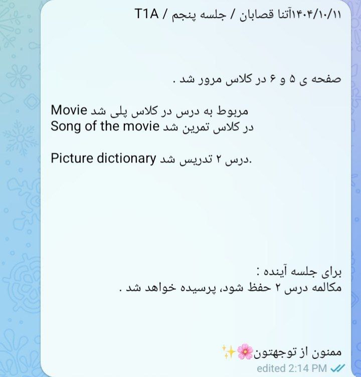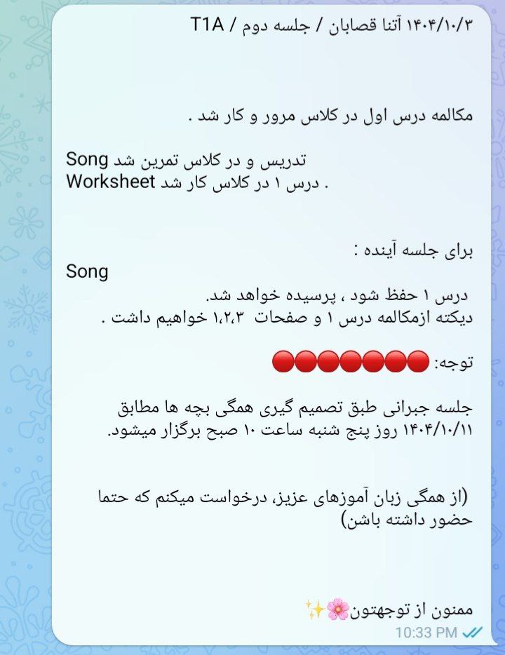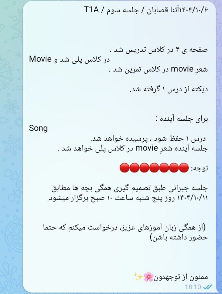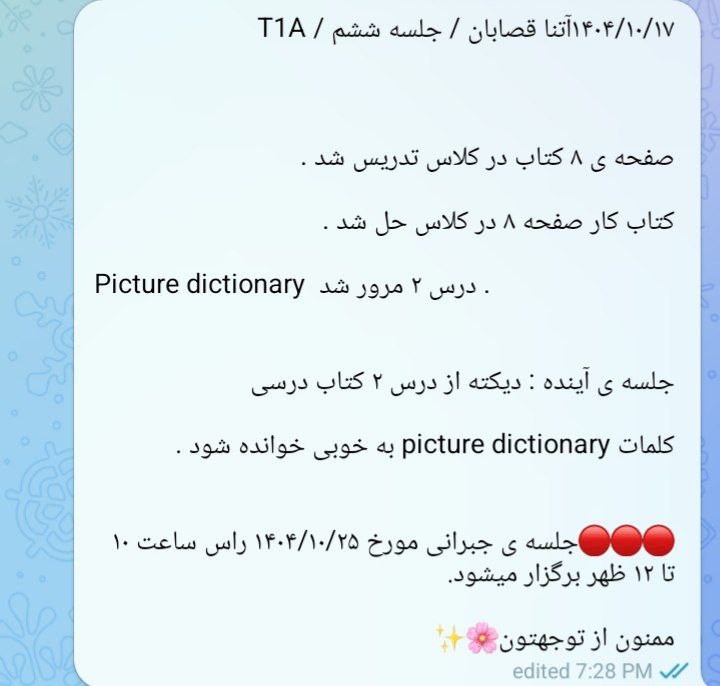 توضیحات : زبان آموزان گرامی لطفا به تاریخ و ساعت جبرانی دقت کنید.