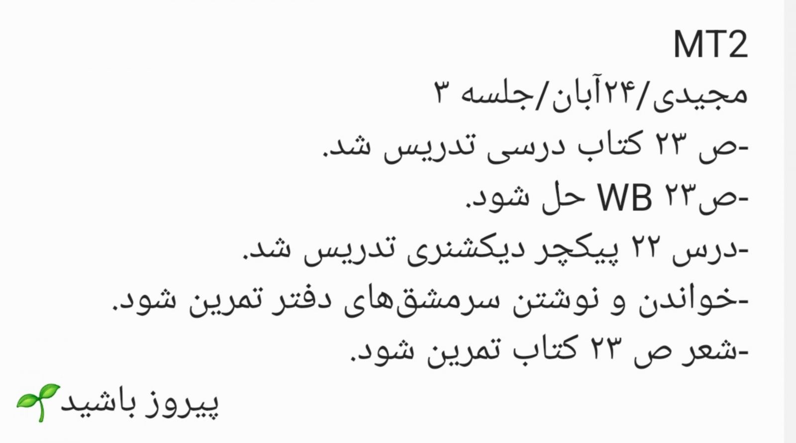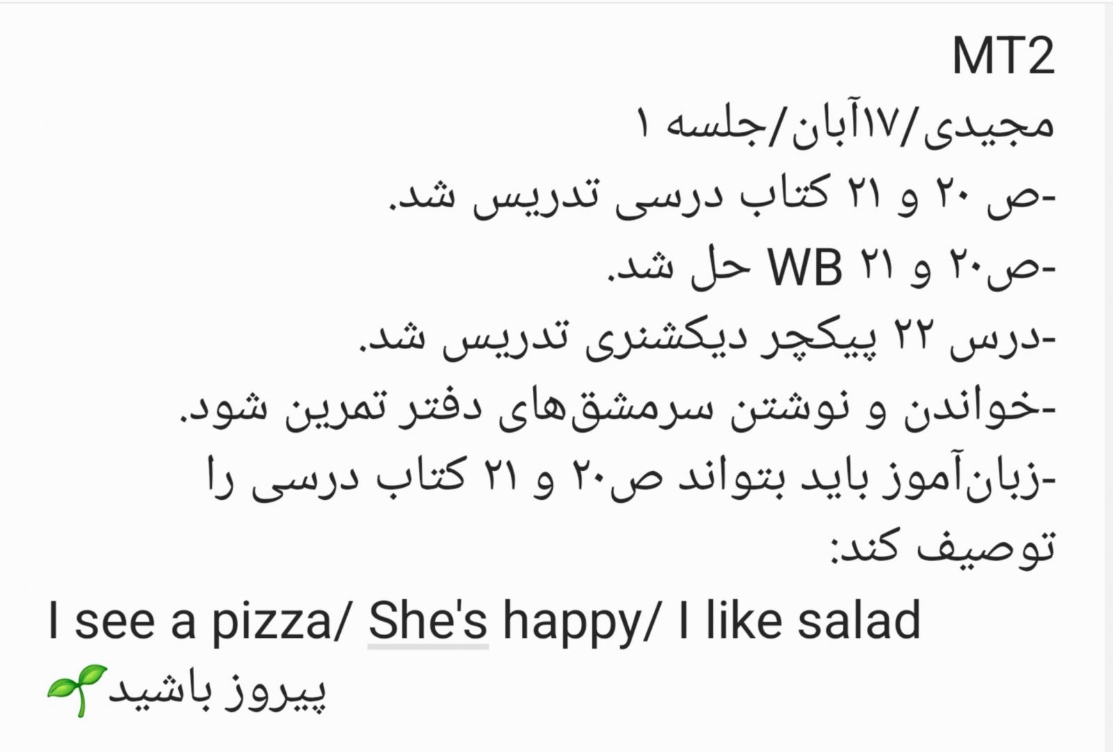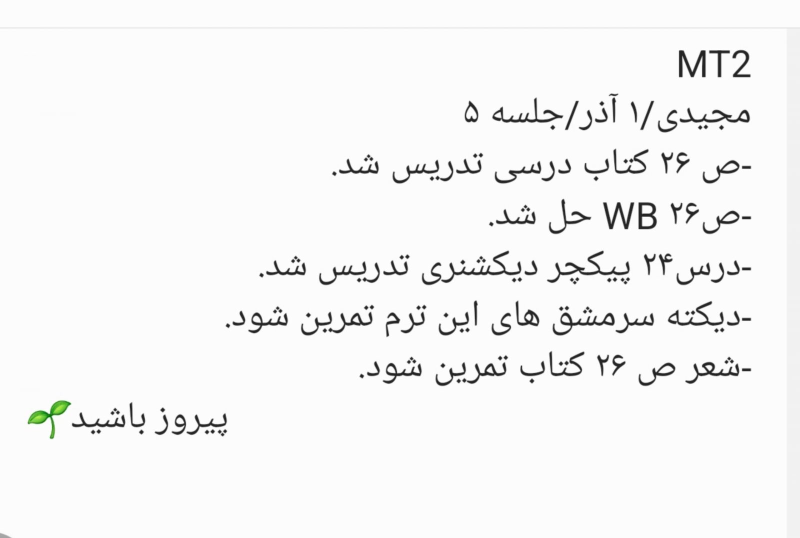 توضیحات : والدین گرامی لطفا دوشنبه 5 آبان ماه، ساعت 14 در جلسه حتما حضور داشته باشید.